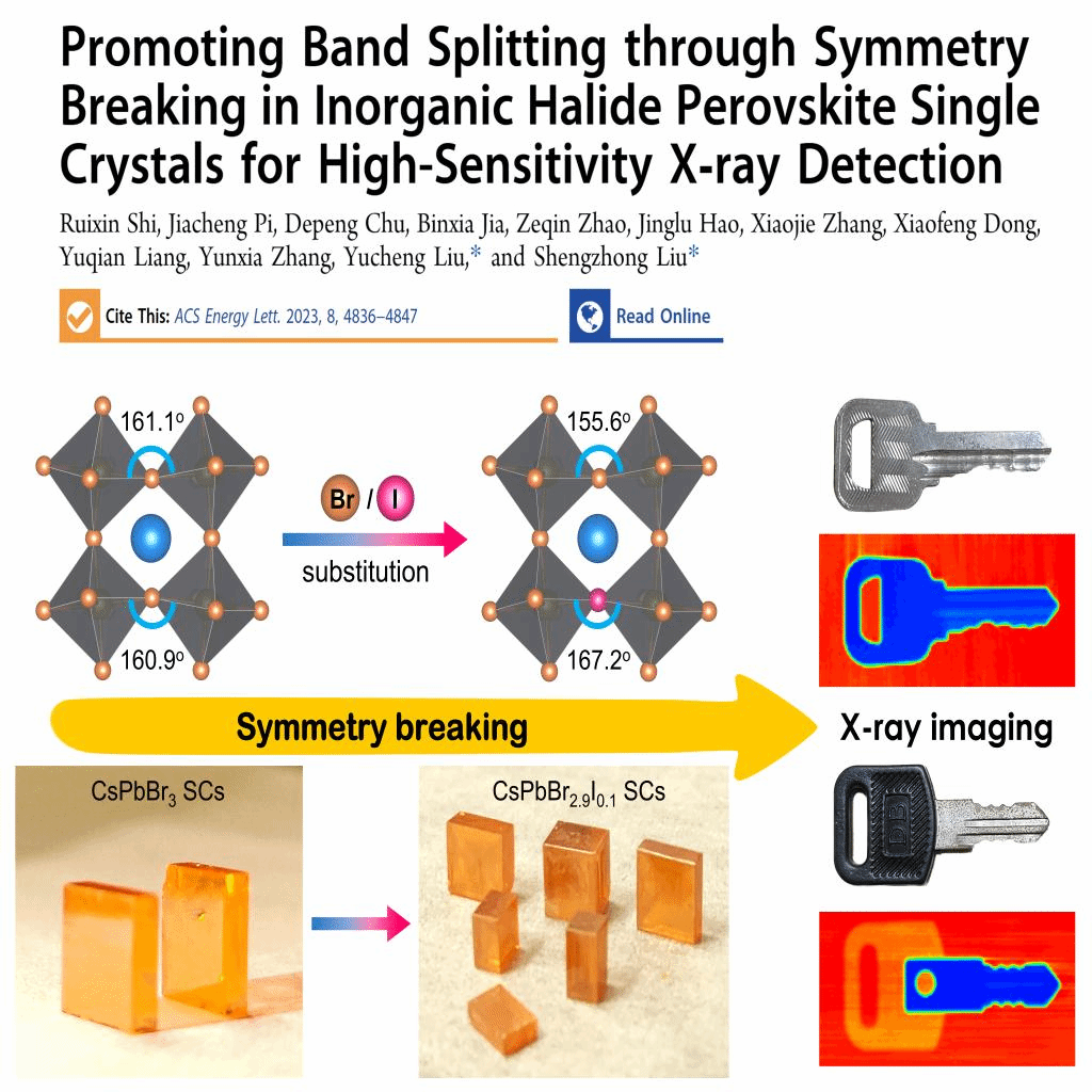 进展二:无机钙钛矿单晶对称性破缺诱导能带分裂实现高稳定灵敏X射线探测