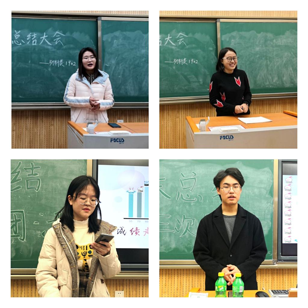 本次会议分别由两位班长主持,他们首先对本学期班级的学习情况、活动的组织及参与情况、班级的文化建设和凝聚力情况等各方面进行了详细的梳理和总结,其次对班级内所存在的问题进行了深刻的反思,并希望同学们能进一步积极表现,共同努力。接下来各个班委轮流发言,重点总结和反思自己本学期的工作并指出同学们所存在的问题和值得嘉奖的地方。最后,为了帮助同学们科学高效的复习,积极准备期末考试,两位学习委员分别邀请了本班级内日常表现踏实刻苦并在期中考试中成绩较为优秀的同学,和大家分享自己的学习方法和备考技巧。最后,在全班同学的积极倡导下,材料类一班和二班分别成立8个学习小组,小组内相互帮助、激励和监督,为取得优异的成绩而共同努力。