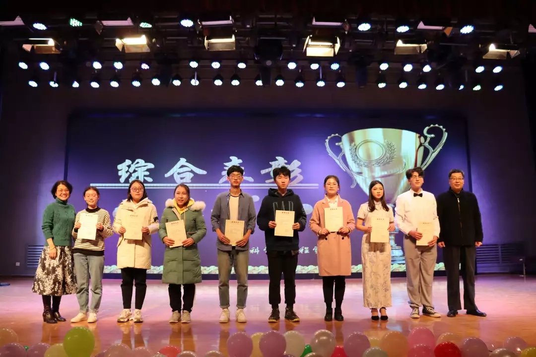 在晚会中间是鼓舞人心的颁奖环节。本次晚会对获得“五好员工”“五好员工干部”“公益之星”“科研之星”“优秀集体”“社团之星”等项目的同学和集体进行了表彰奖励,这次表彰进一步坚定了同学们刻苦学习,积极参加文体活动和社会实践活动的决心和信心,同时也增强了同学们的集体荣誉感和班级凝聚力。
