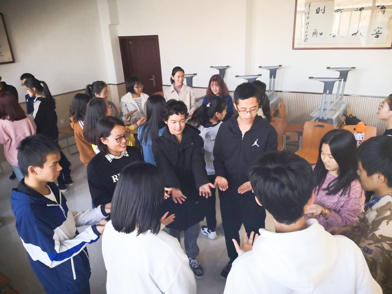 最后,同学们对本次团辅活动的体验进行分享交流,在心理委员的引导下进一步总结。本次活动,有效的促进了同学们之间的认识和了解,进一步加深了彼此间的友谊;同时也让同学们深刻的感受到了团结协作的重要性,营造了良好的班级氛围,取得了圆满的效果。