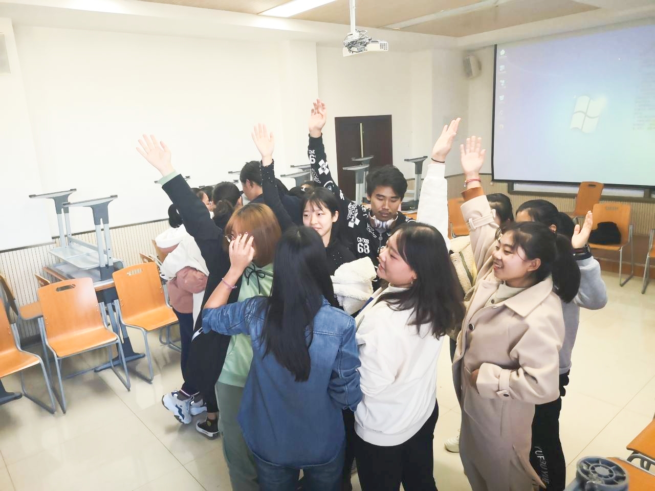本次活动由心理委员李海硕同学主持,主要包括六个小游戏,分别是“大风吹、一元几角、滚雪球、抓手指、你我的歌、表白不许笑”。每个游戏活动班委们精心组织,各有特色,活动过程中,同学们积极参与,每一个人都融入到游戏中,整个过程同学们欢声笑语,气氛愉悦而融洽。
