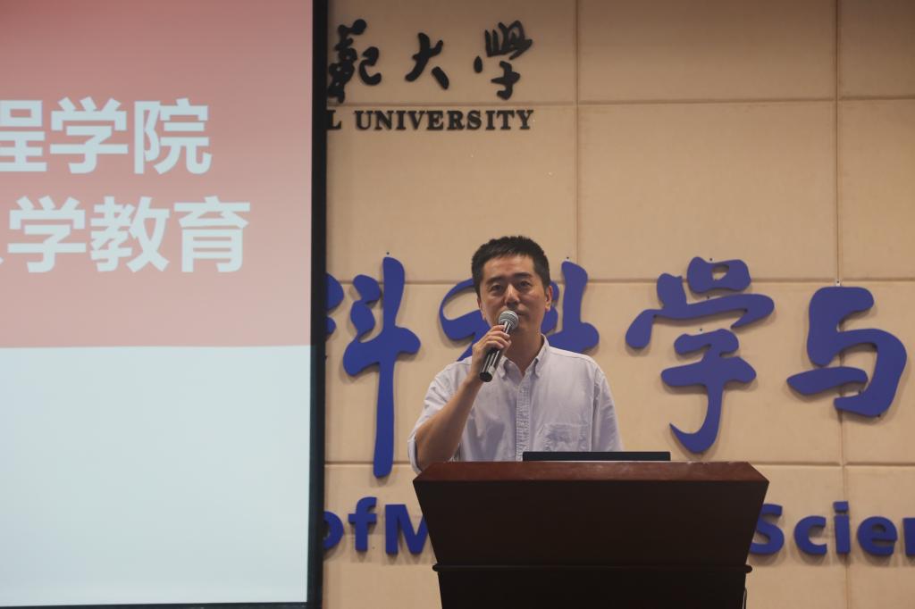 何学侠老师作为研究生导师代表进行了发言,她说本科阶段以获取知识为主,而研究生更注重知识的应用和创造力的提升。建议同学们面临人生的转型阶段,要尽早明确未来的发展目标,对于科研、就业和人生道路的选择进行合理规划并朝着目标努力奋进。