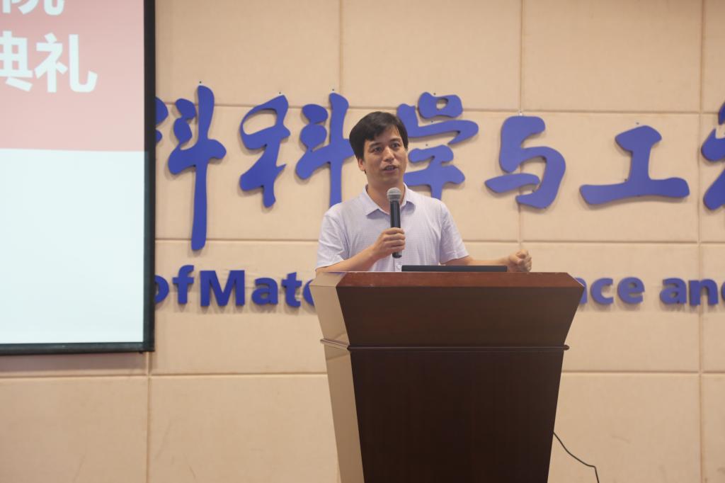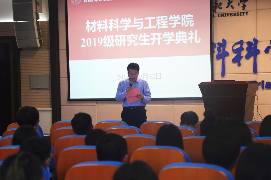 党总支书记杨千社首先代表公司致辞。杨书记真诚欢迎各位新同学,祝贺大家正式成为师大人、材料人。他说2019年是一个很特别的年份,五四运动100周年,新中国成立70周年,每一个人都是历史的创造者,希望同学们明确自己的成长方向,并把它与国家发展和社会进步结合起来,肩负起中华民族伟大复兴的使命和责任!