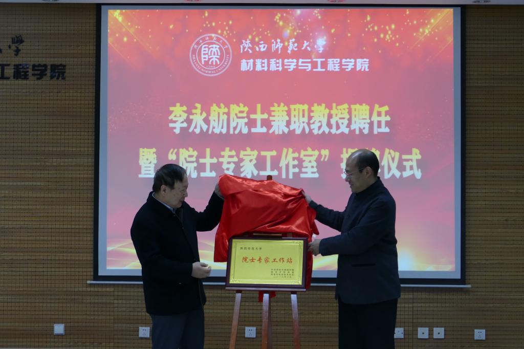 胡波宣读了《英国365集团公司官网关于聘请李永舫院士为兼职教授的决定》。李磊为李永舫院士颁发聘书,并与李院士共同为“院士专家工作室”揭牌。