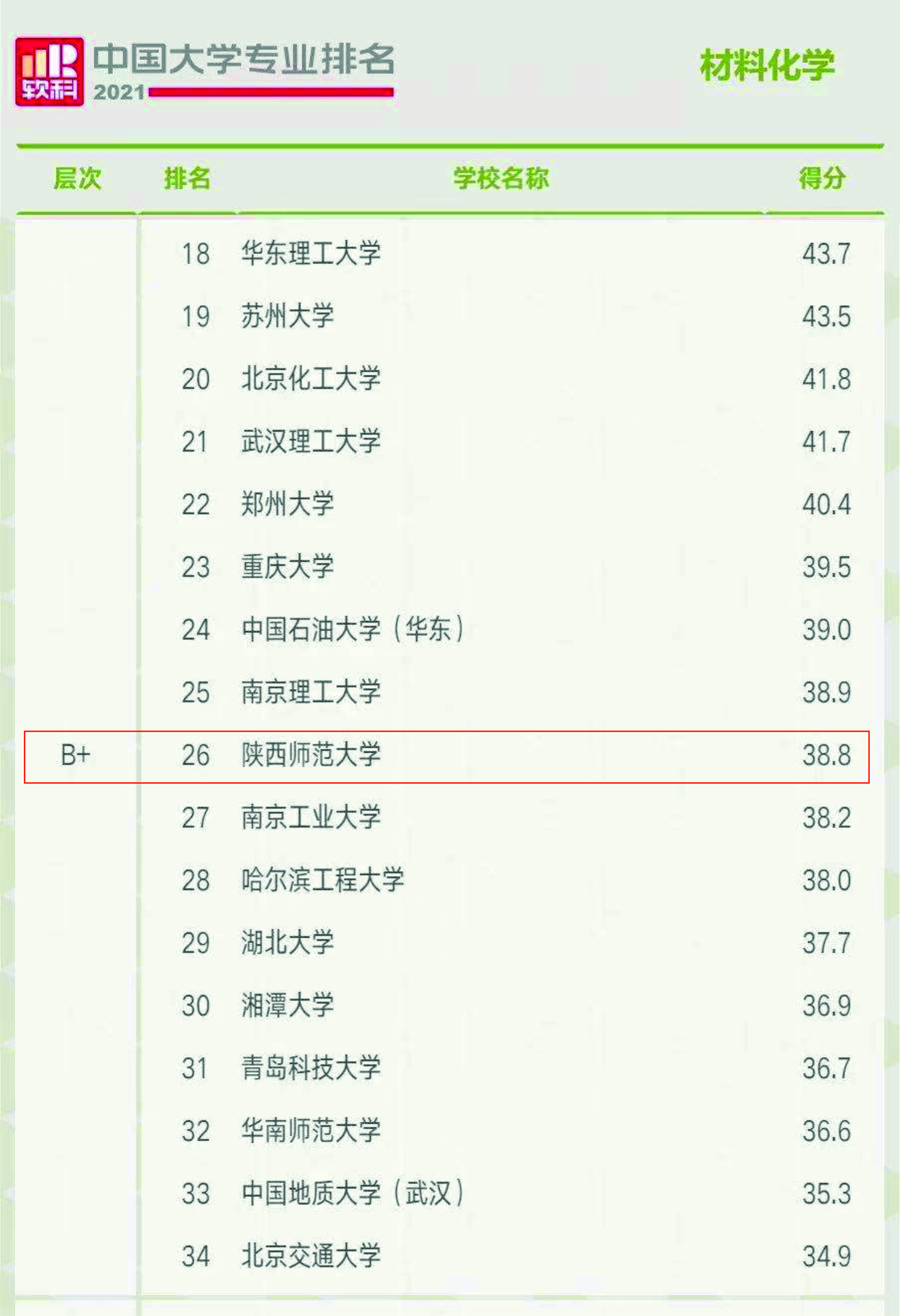 2021年6月22日,高等教育评价专业机构软科正式发布2021“软科中国大学专业排名”。其中,公司材料化学与新能源材料与器件本科专业均评级为B+。